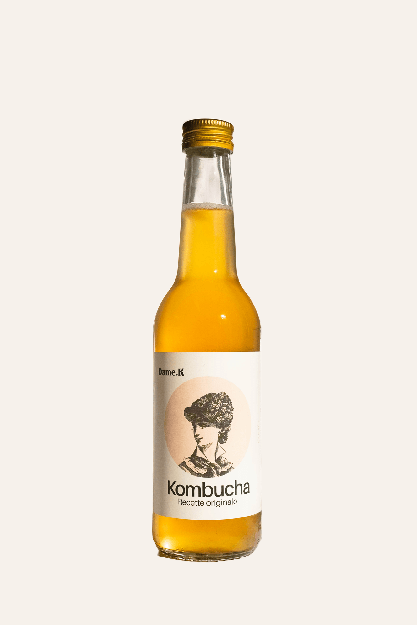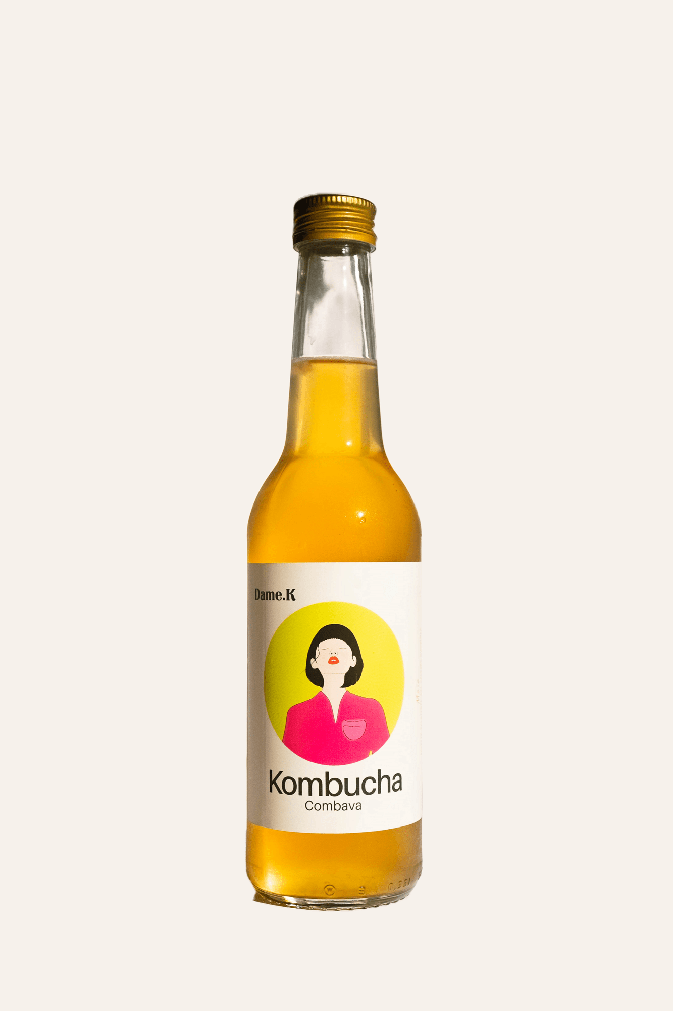 Kombucha Dame.K 〰️ Eau dynamisée, culture vivante de kombucha, thé vert* et thé noir*, sucre de canne blond* et roux*.